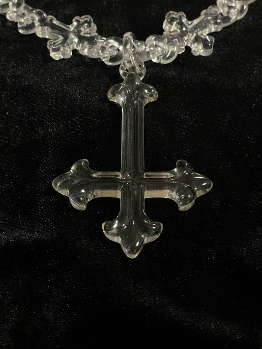 UPSIDE-DOWN CROSS CLEAR NECKLACE